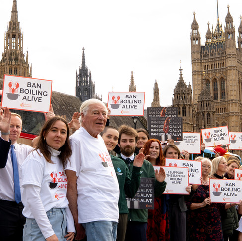 Ban Boiling Alive: In January we renewed our campaign to end one of the most barbaric practice: boiling live, conscious crustaceans. In October we reignited the urgency with our Boiling Point event outside Parliament, joined by supporters, fellow animal welfare organisations and our Ambassador Wendy Turner-Webster and her amazing father Brian. We're disappointed that we didn’t make our 2025 ambition but we are not deterred and more determined than ever. We met with Defra just last week and believe a ban will come in 2026 with their upcoming guidance on Welfare at the Time of Killing regulations. We will keep up the pressure to ensure it becomes a reality.