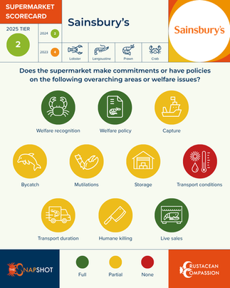 As we share the fourth edition of The Snapshot: Industry Benchmark on Decapod Crustacean Welfare, we’re excited to see the seafood industry continuing to make real progress for these remarkable animals. And this year, we’re taking things a step further. Alongside the full report, we’ve created our new Supermarket Scorecards - simple, friendly guides to help consumers quickly see how their favourite retailers are performing on key crustacean welfare issues. Together, they help everyone from producers to everyday shoppers play a part in driving higher standards across the seafood sector.